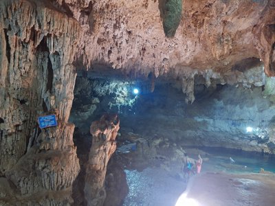 Subterranean caverns known for ancient stalactite formations & tranquil swimming pools.