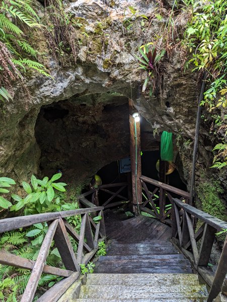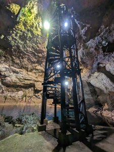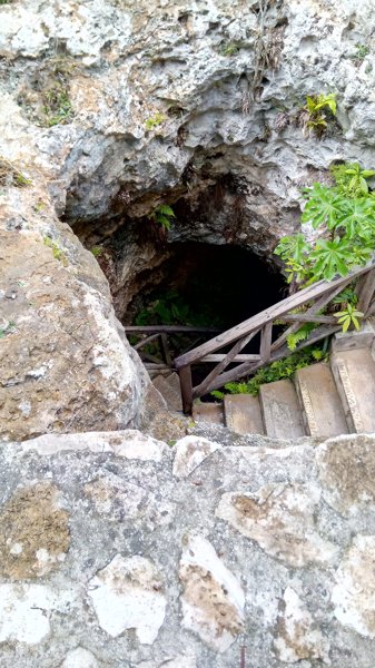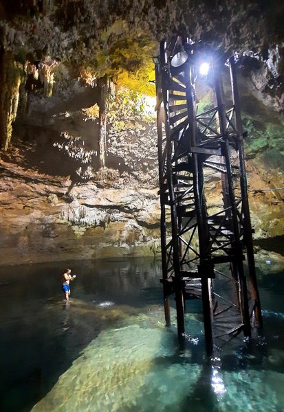 Descent through a cave to an underground swimming hole popular for snorkeling & jumping from rocks.