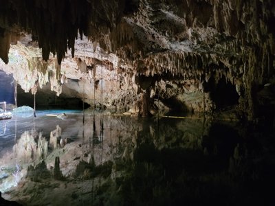 Visitors can explore, swim & snorkel in these low-lit caverns with natural pools & stalactites.