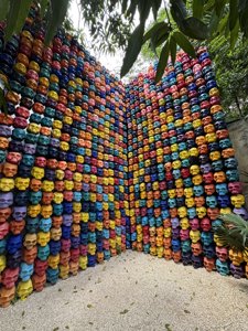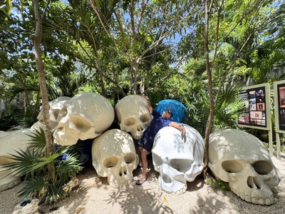 Boutique cenote known for its artistic skull-lined walls and jungle path.