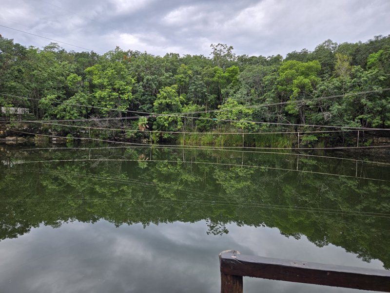 A massive open cenote (65m wide) featuring double ziplines; first stop on the Ruta de los Cenotes.