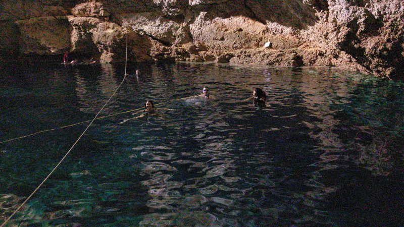 Natural swimming pool in a rocky subterranean cave, with life jacket rentals & changing rooms.