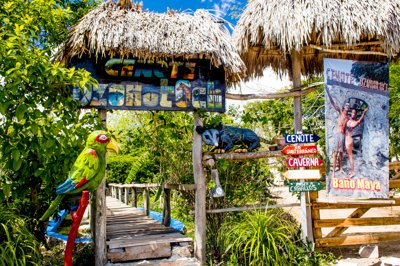 Eco-reserve featuring a mud bath, underground river, and Mayan drawings.