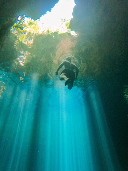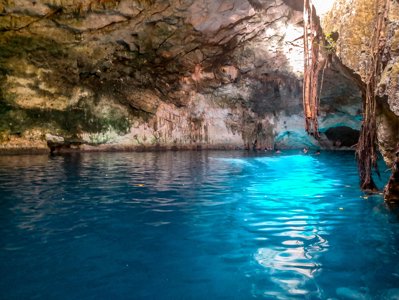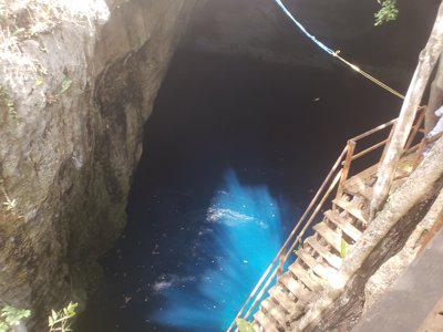 Famous diving spot; semi-open with a 9m freefall and deep caverns.