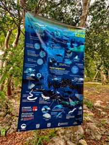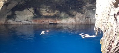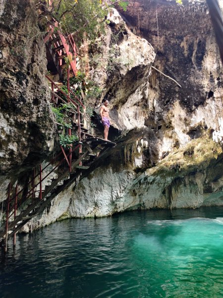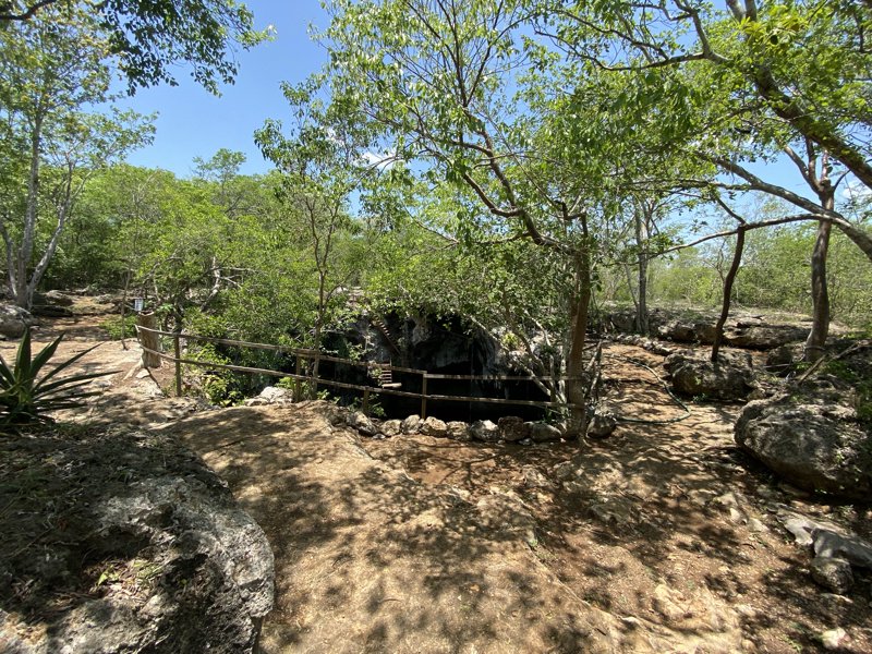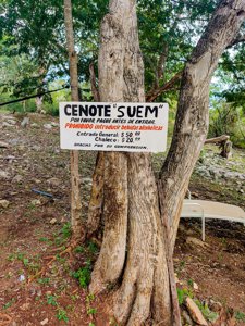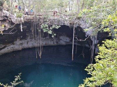 A classic "blue eye" cenote in the Pixyah region; very deep and clear.