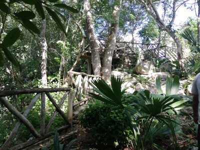 Relaxed cenote attraction offering swimming, a zip line, a playground & dining by the water.