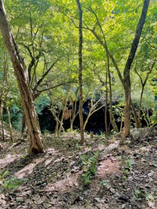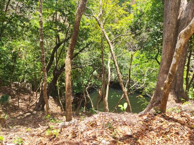 Cenote once used as a Mayan water reservoir, with several small temples & ruins nearby.