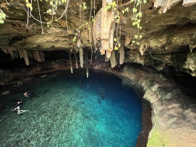 Shallow cavern cenote with clear water and very easy access.