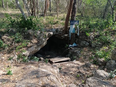 A community-managed cave cenote with impressive rock formations.