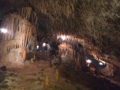 Known as the "Ghost Cenote" for its white stalactites and crystal-clear turquoise waters.