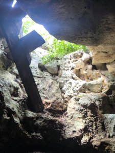 A small, "hidden" cavern cenote popular with technical divers.