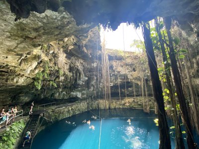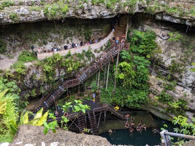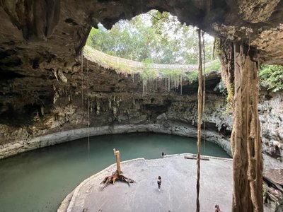 Picturesque open-air cenote, popular for swimming, cliff jumping & snorkeling (no scuba diving).