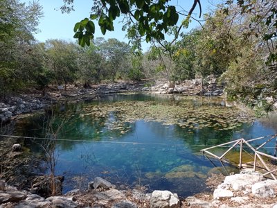 Natural limestone pool for swimming located near a popular Maya archaeological site.