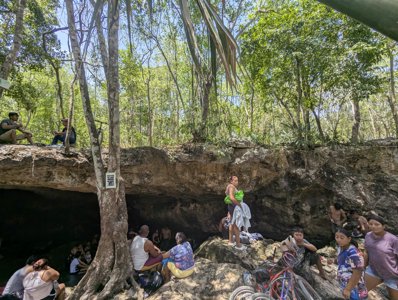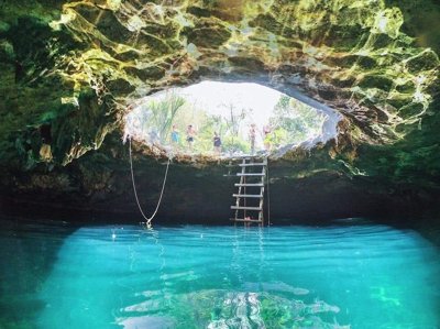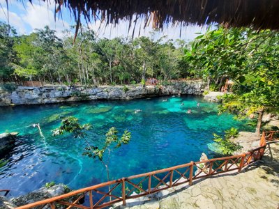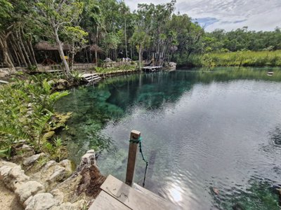 A massive vertical shaft cenote hidden deep in the jungle west of Tulum. Its sheer walls drop 40 meters straight down to the water, making it one of the most dramatic cenotes in the region. Difficult to access but spectacular for those who make the journey.