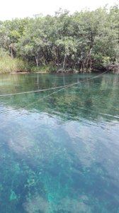 Swimming hole with crystal clear waters also known for scuba diving & underground caves.