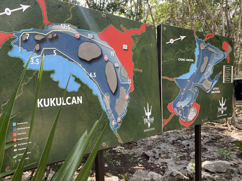 Cenote Kukulkán is a cave dive site along the Riviera Maya corridor between Playa del Carmen and Tulum, named after the feathered serpent deity of the ancient Maya. The cenote features a narrow entrance that opens into a large underwater chamber with a prominent halocline. It is a popular site among Tulum-based dive operators for cavern and cave-certified dives.