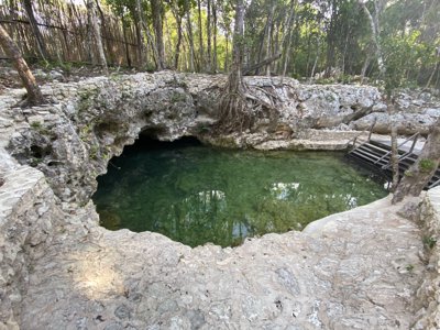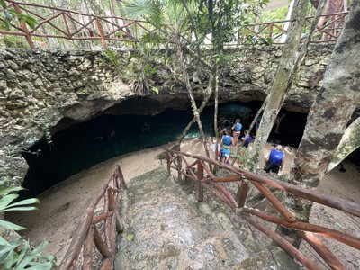 A lush eco-park near Tulum offering cave swimming, rappelling, and traditional Mayan ceremonies. The multi-activity experience includes guided rappel descents into the cenote and cultural programming.