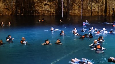 Part of the "Magic World" eco-park near Tulum, Cenote Labna-Ha offers a high-end snorkeling experience through long, illuminated underground rivers filled with millions of tiny stalactites. Includes gear, buffet, and expert guides for a premium cave snorkeling tour.