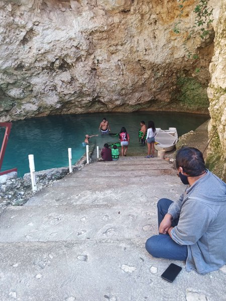 A shallow cave cenote, very safe and ideal for families with children.