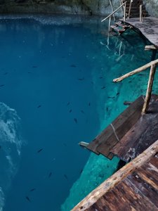 Large open cenote (80m wide) with three jumping platforms.