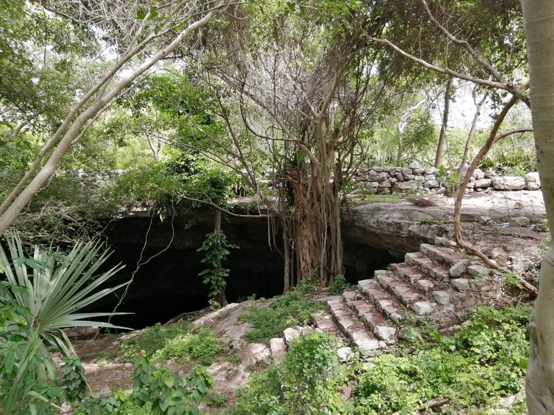 Shallow cave cenote near Mucuyché; site of an ancient settlement.