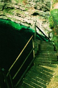 A small, "hidden" cavern cenote popular with technical divers.