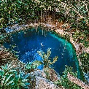 A "Secret" boutique cenote park with a waterfall and luxury amenities.