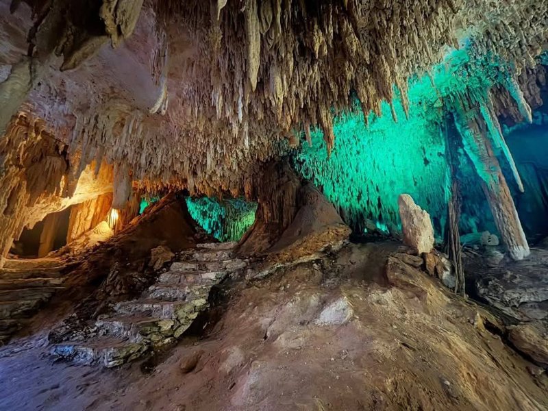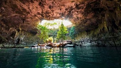Semi-open cenote located near the Mayan pyramids in the center of town, steps from the Pyramid of the Masks.