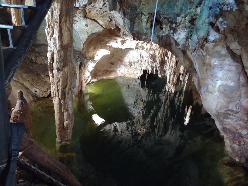 "White Wings"; a semi-open cenote with a high ceiling and large birds.