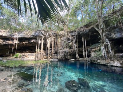 Natural limestone pool for swimming located near a popular Maya archaeological site.