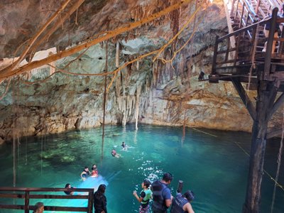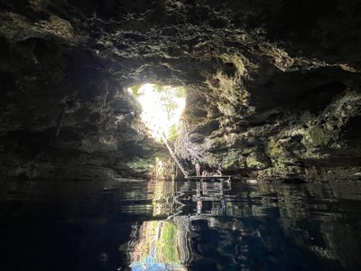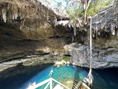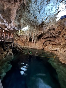 Shallow cavern cenote with clear water and very easy access.