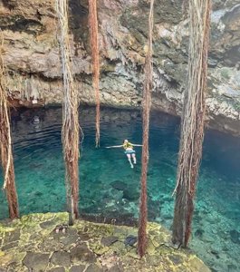 A shallow cave cenote, very safe and ideal for families with children.